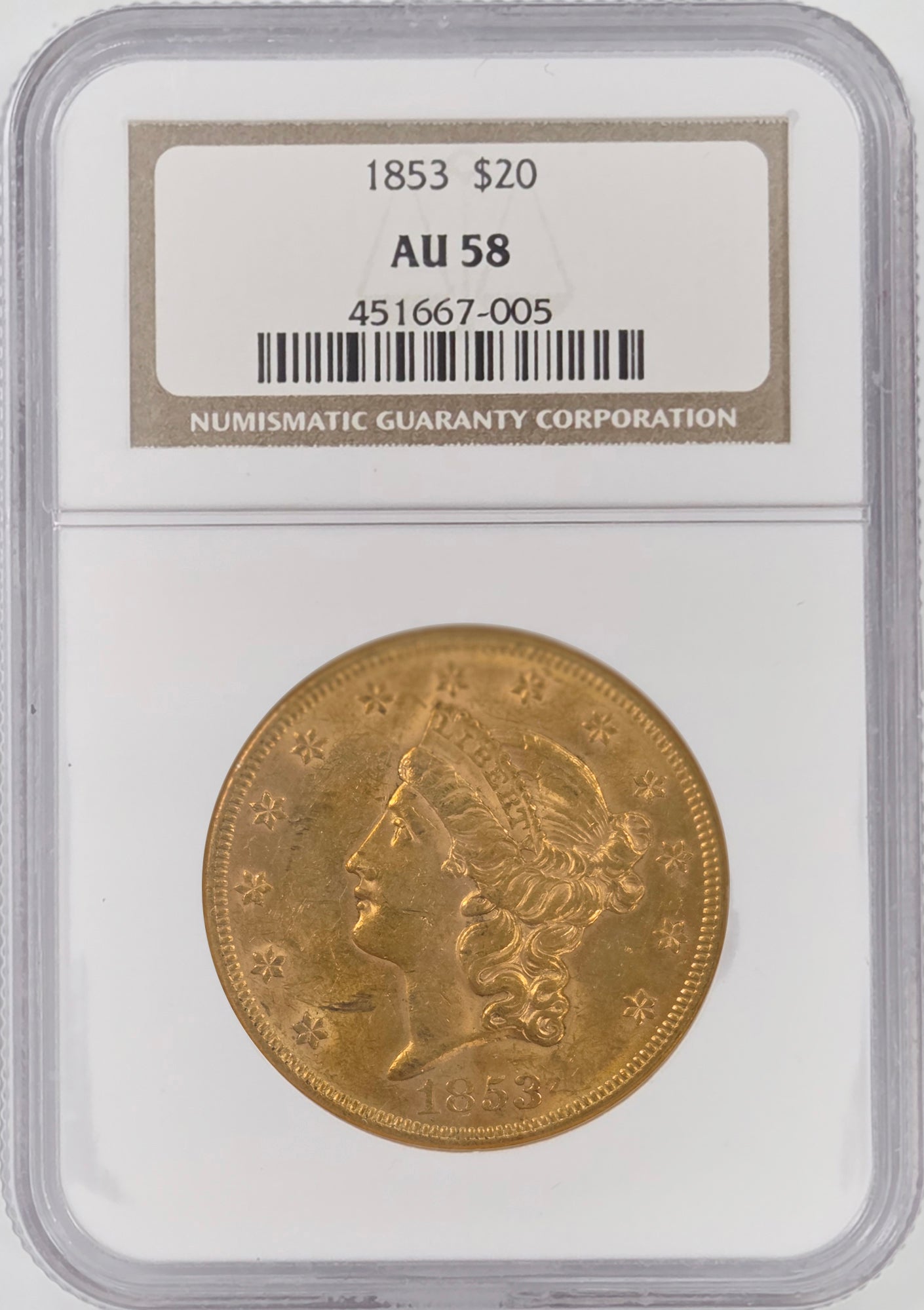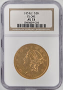 1853 $20 Gold Liberty NGC AU58