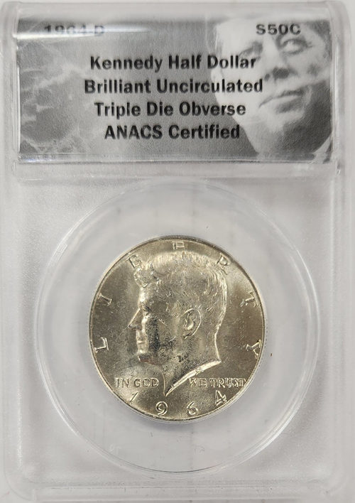 1964-D 50C Kennedy Triple Die Obverse ANACS Brilliant Uncirculated
