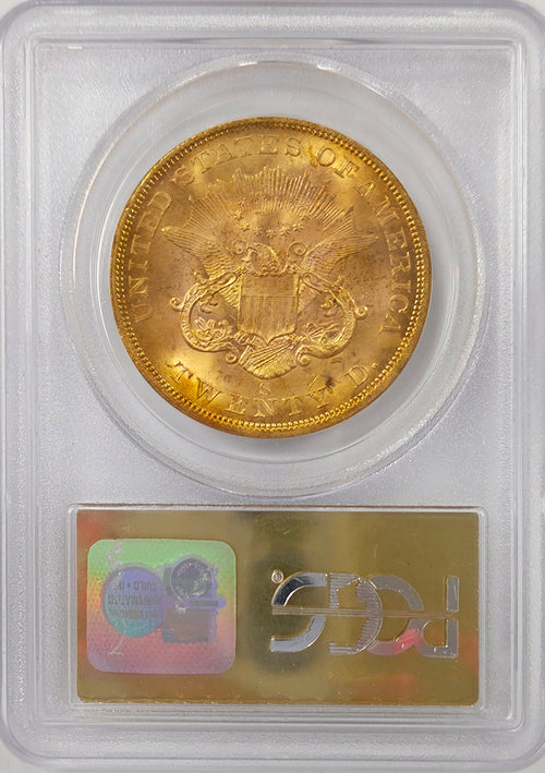 1857-S $20 Gold S.S. Central 20A Spiked Shield PCGS MS64 SSCA 3595