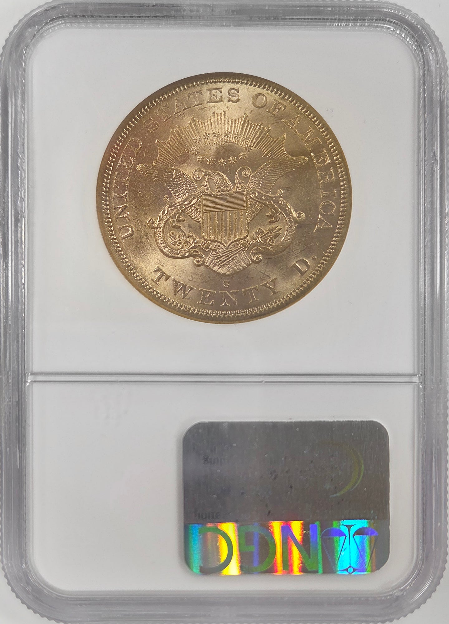 1865-S $20 Gold SS Republic Small S NGC MS61