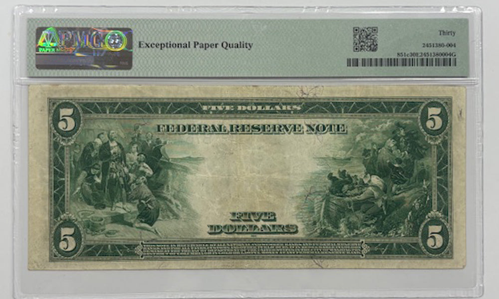 Series 1914 $5 Federal Reserve Note New York Fr.851c PMG VF30EPQ