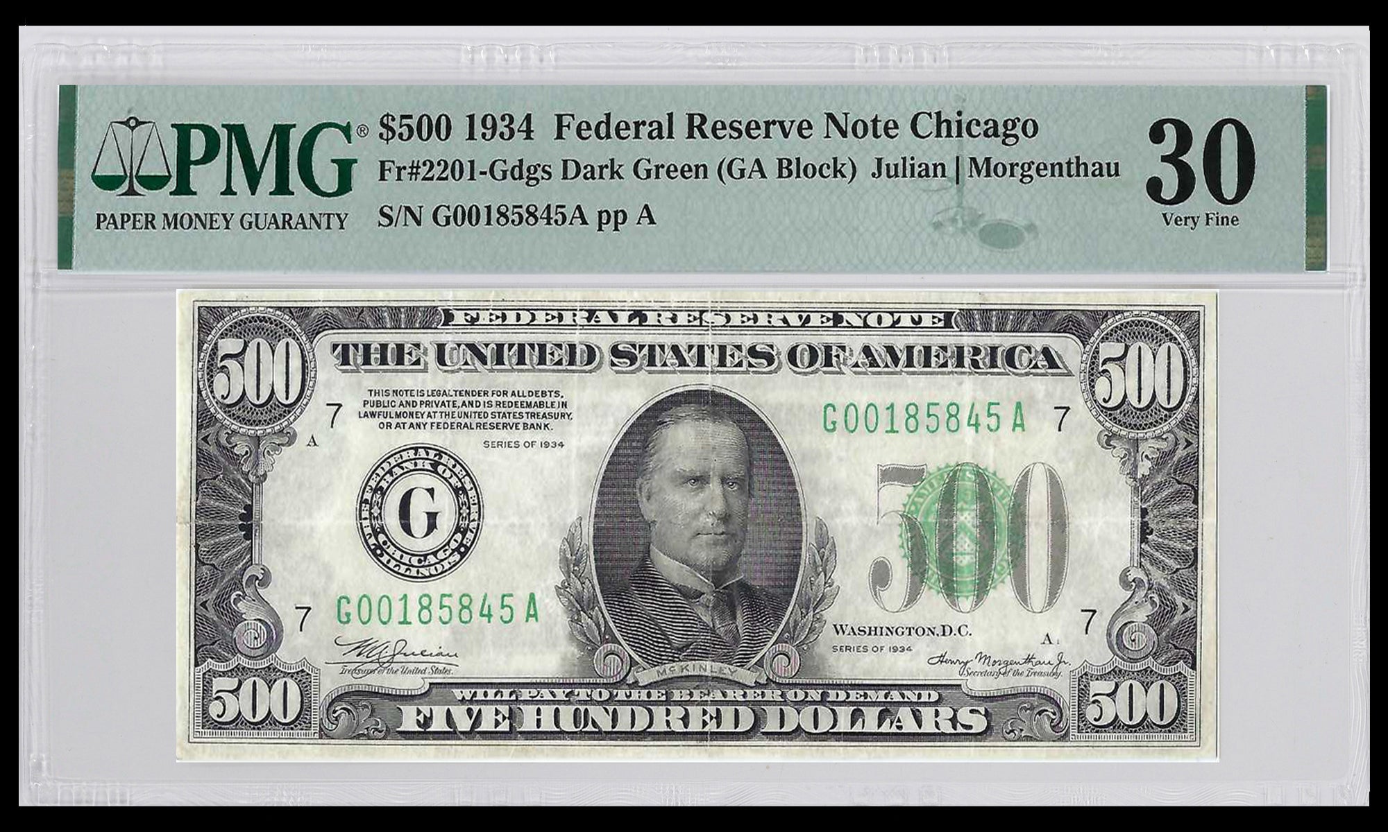 Series 1934 $500 Federal Reserve Note Chicago Fr.2201-Gdgs PMG VF30
