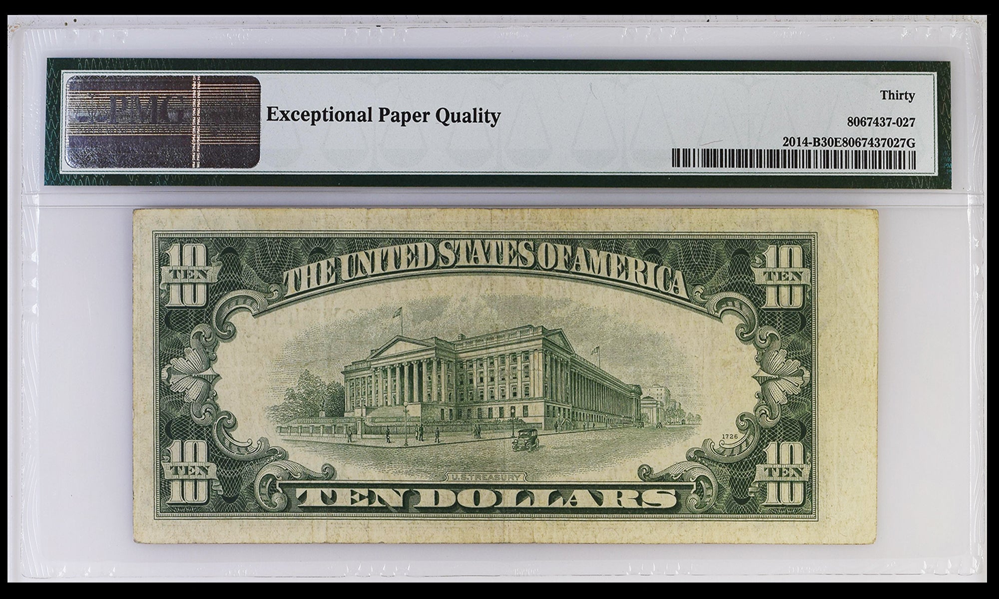 Series 1950D $10 Federal Reserve Note New York Fr.2014-B PMG VF30 EPQ